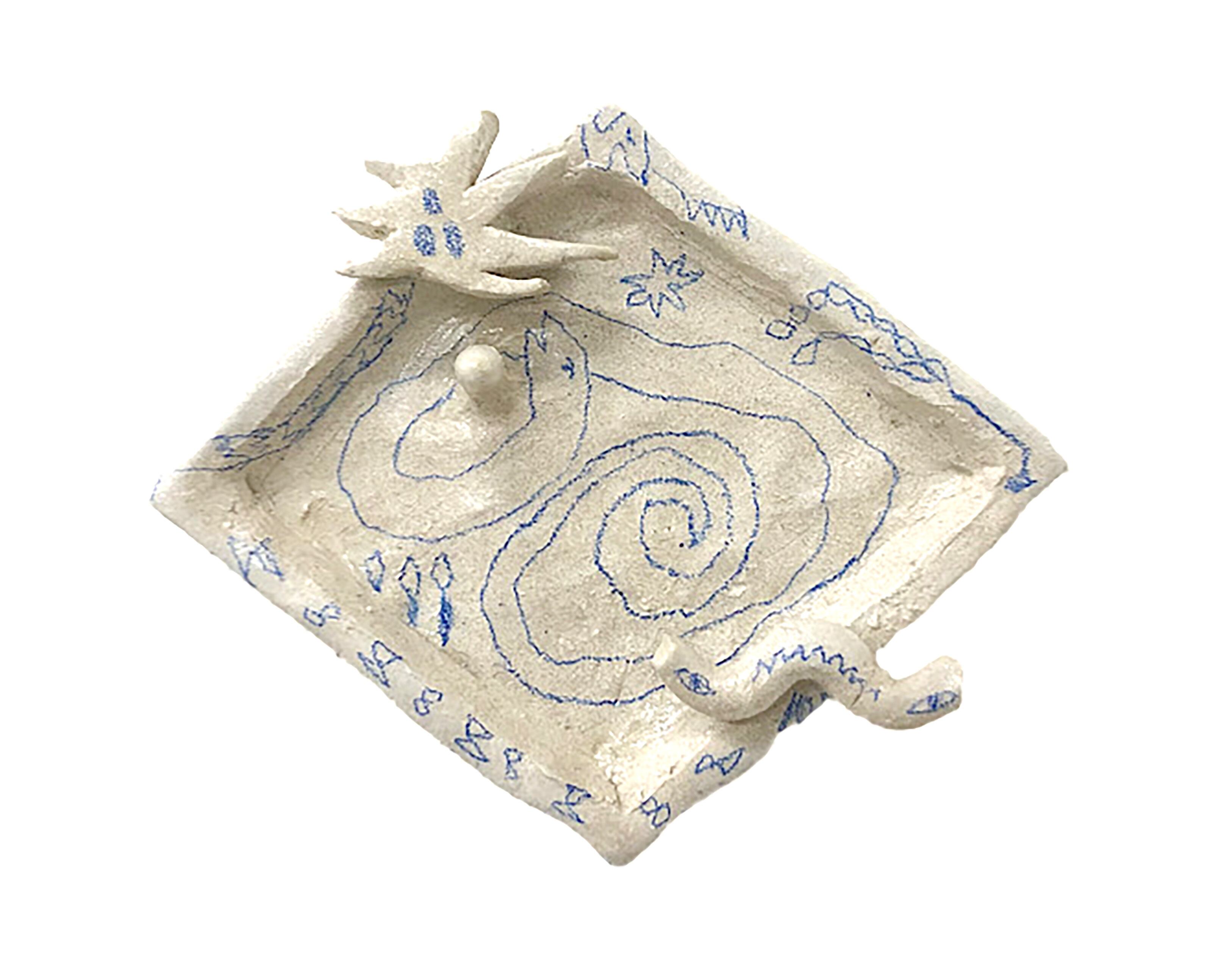2021 オーブン陶土に色鉛筆 ※陶器作品はギャラリーにて販売中、オンラインストアではお買い求めいただけません。